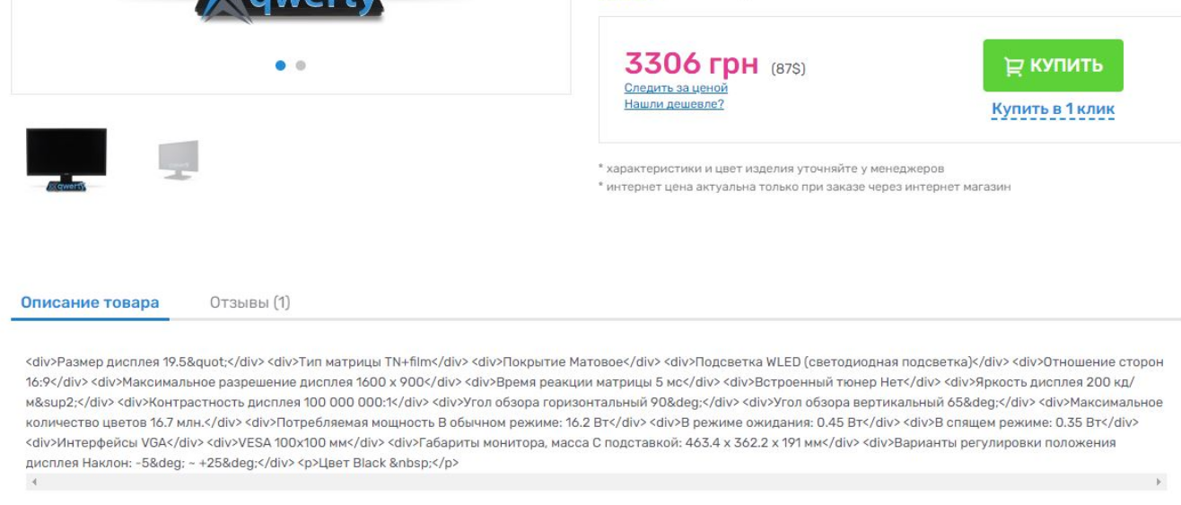 Слитный текст с HTML-тегами на странице товара