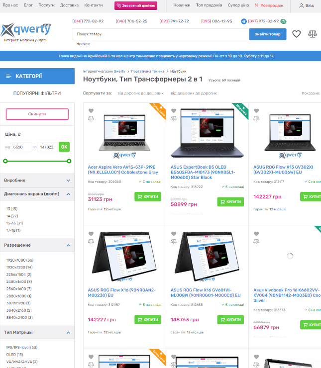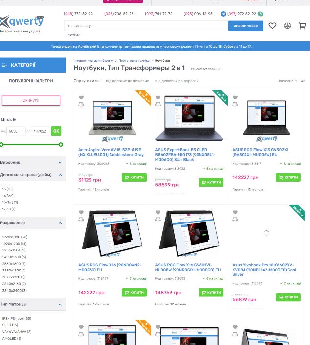 Открыть страницу https://qwertyshop.ua/noutbuki/filter/1101=9645