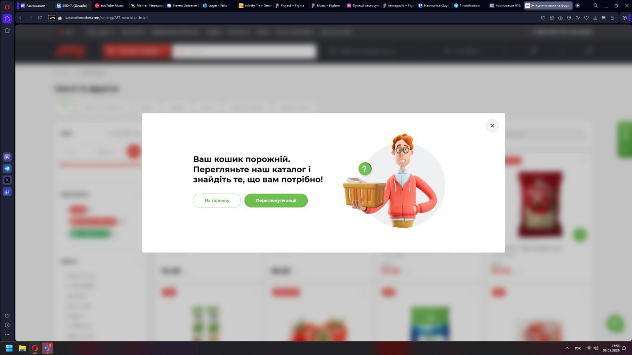 2. Нажать любую кнопку со всплывающим окном (Пример: Корзина)