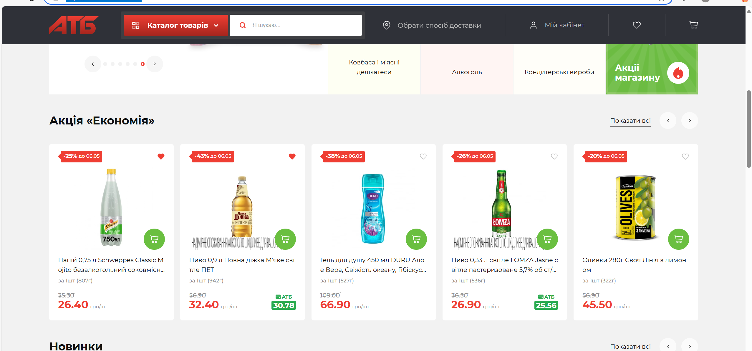 1) Открыть главную страницу https://www.atbmarket.com/.