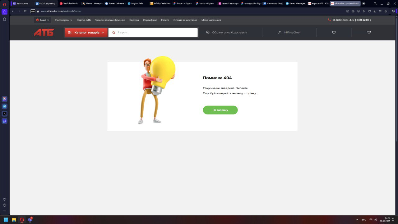 Actual result: При нажатии на любую кнопку переносит на страницу 404 АТБ Маркета