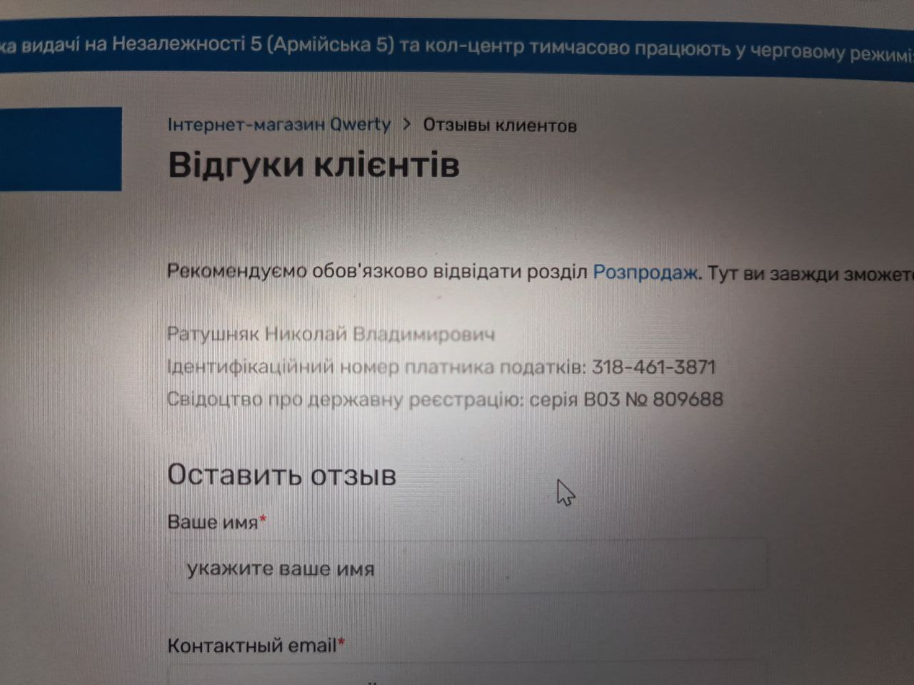 3)Ниже на странице (Оставить отзыв) исправить на (UA) язык.