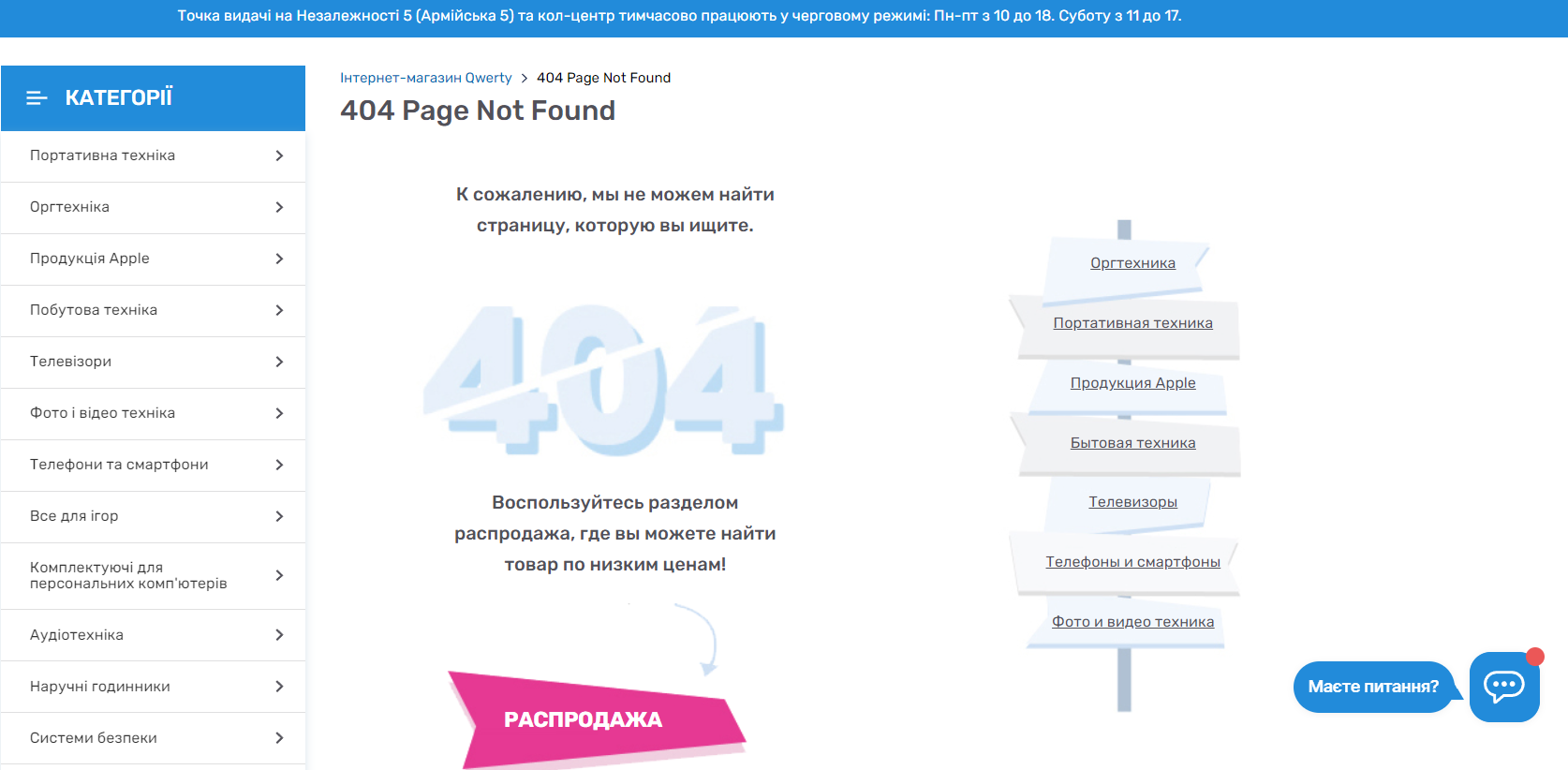 В українській версії не здійснюється перехід в розділ "Розпродаж"!