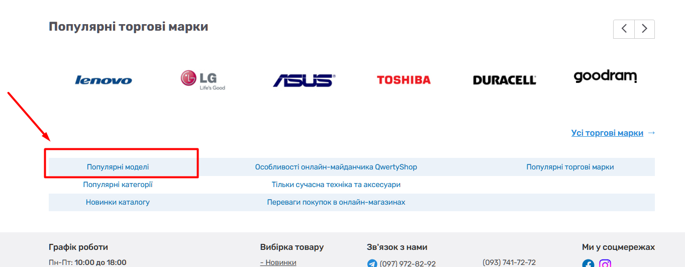 2) проскролити сторінку вниз до розділу "Популярні торгові марки"