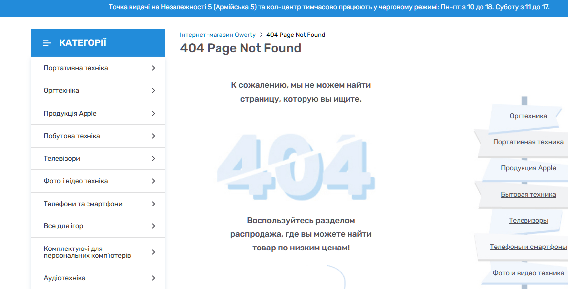 Відображається "Помилка 404" в розділі "Розпродаж"в українській версії сайту