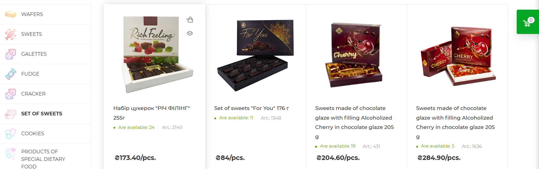 Название и описание товара на украинском языке в английской версии сайта в разделе "Set of sweets"
