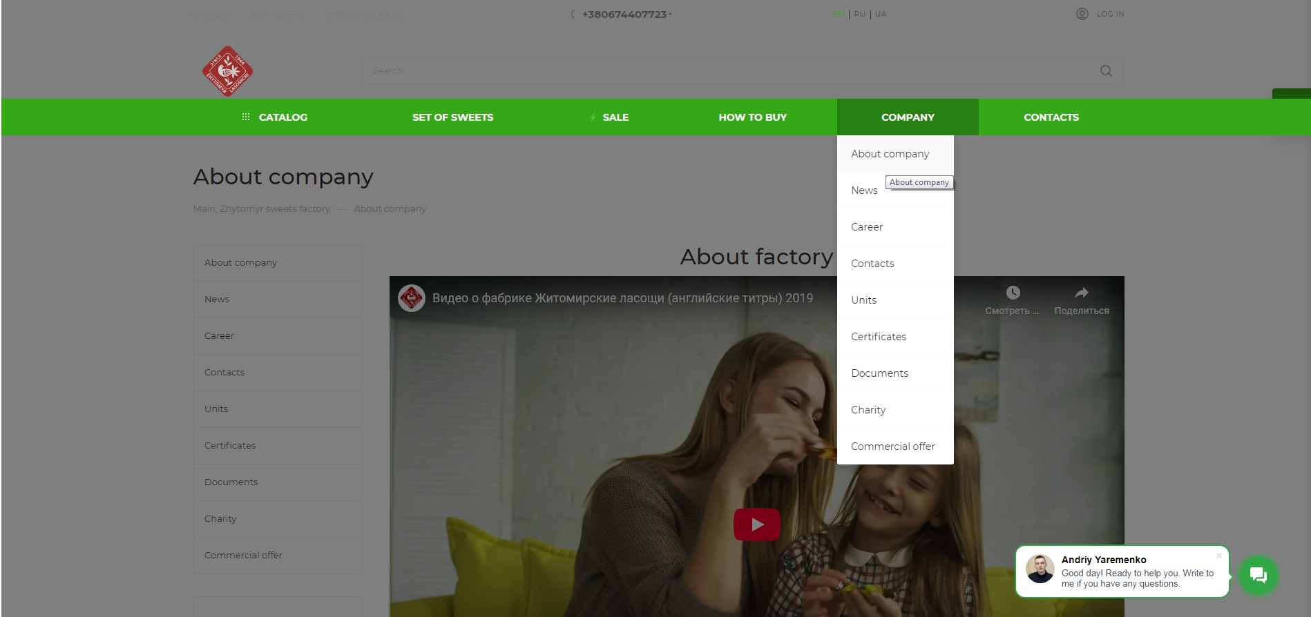 При нажатии на любую ссылку в сплывающем меню «Company» сайт автоматически переходит на украинскую раскладку, при выбранной английской раскладке сайта.