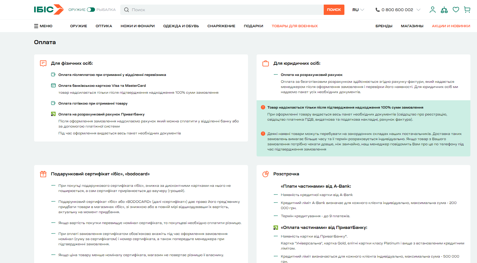 Картика с вариантами оплаты по Украине на украинском языке при русской локализации в разделе "Оплата и доставка"
