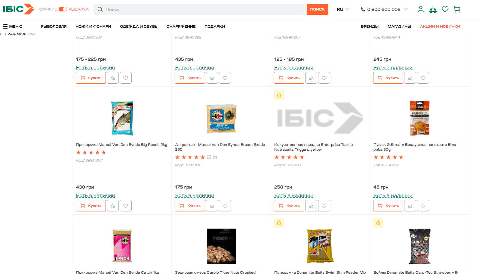 5) Перейти в подраздел "Искусственные насадки"