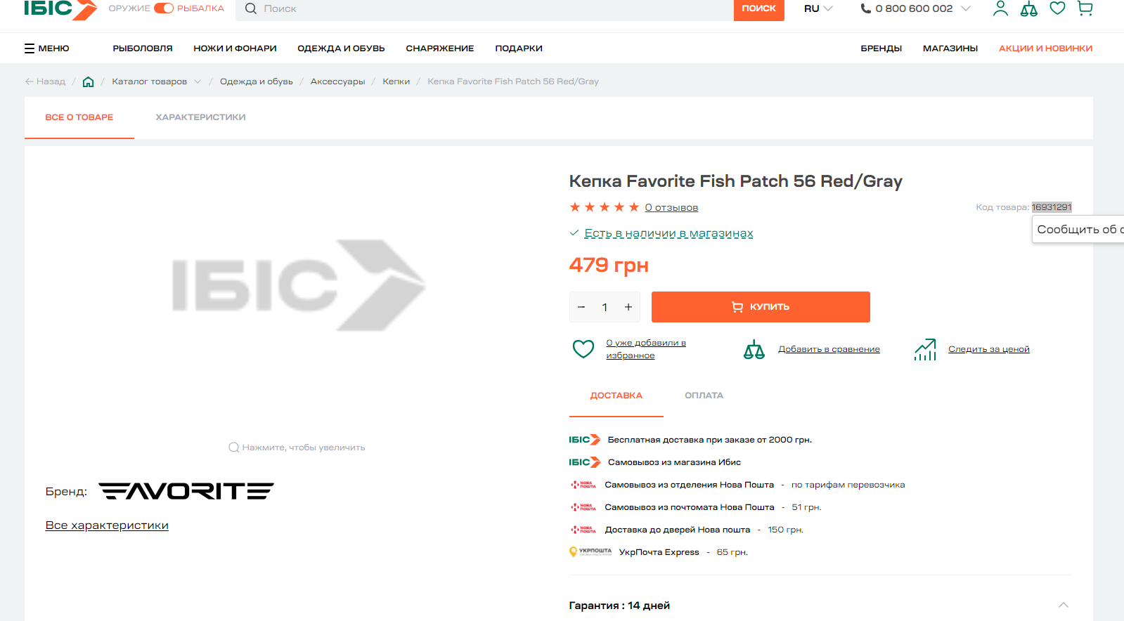 Expected result: Присутствует картинка к товару "Кепка Favorite Fish Patch 56 Red/Gray" код товара: 16931291