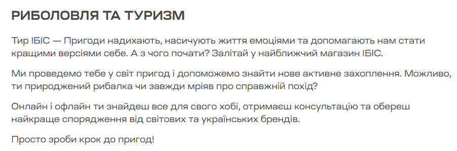 [L10N] в русской локализации статья "Риболовля та туризм" в разделе "Направление компании ибис", в body страницы, - на украинском языке