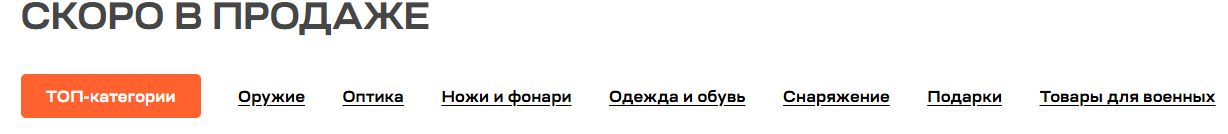 [Functional] Кнопки "Топ категории", "Оружие", "Оптика" в блоке "Скоро в продаже" не работают