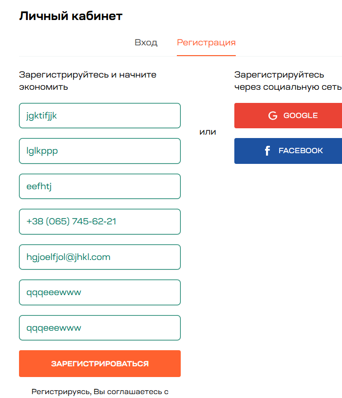 [Security] Возможна регистрация с некорректными (рандомными) значениями в "Личный кабинет"