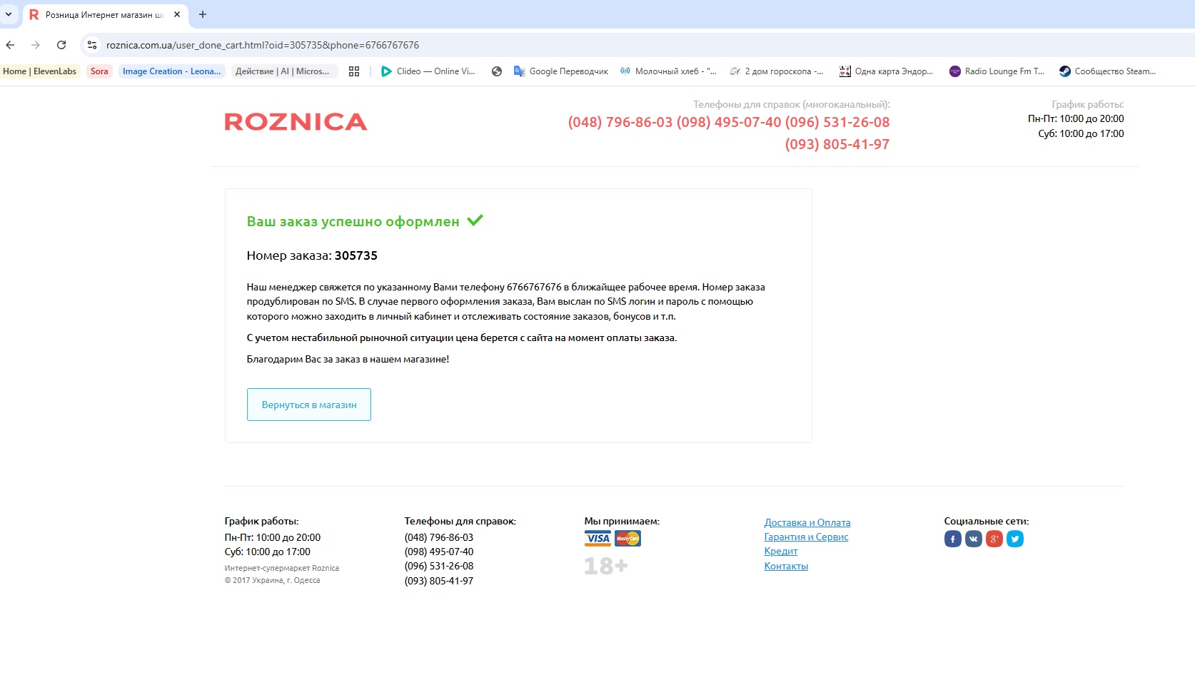 2) Оформить заказ, указав номер телефона