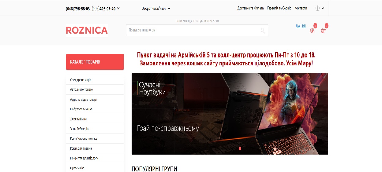 1) Открыть главную страницу