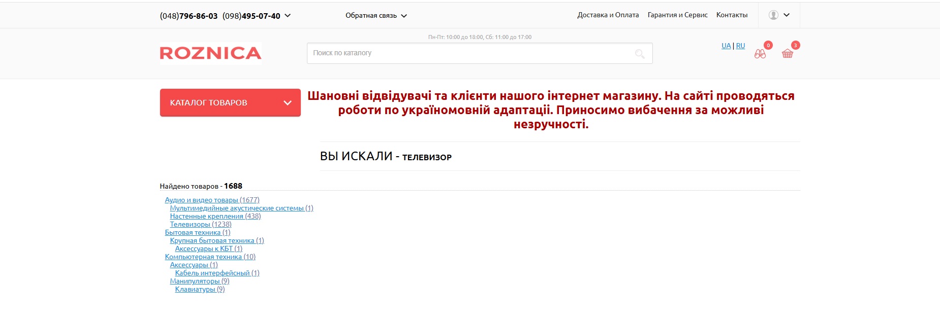2) Ввести любой товар в строку "Поиск по каталогу"