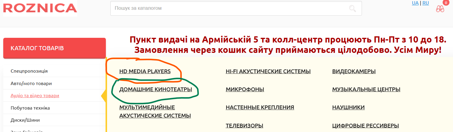 3) Перейти через "Каталог товарів" на вкладку "Аудіо та відео товари"