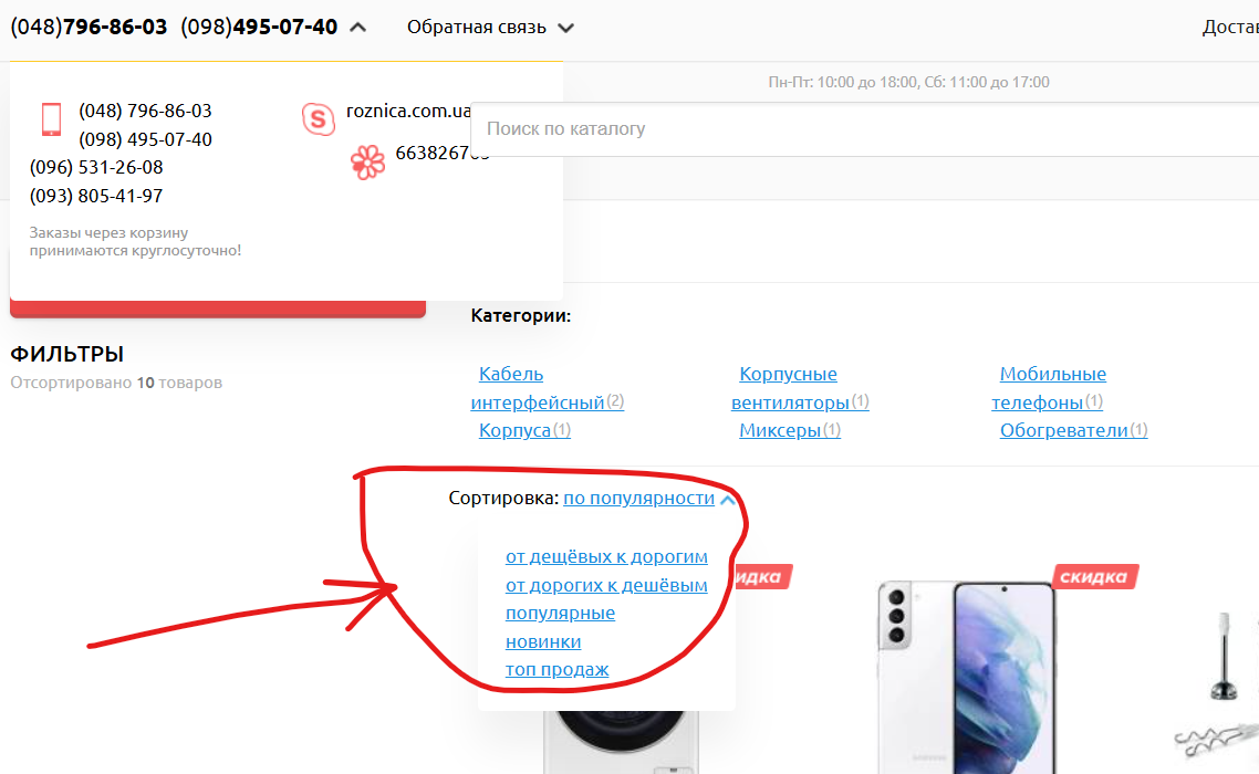 Сортування в розділі "Спецпропозиція" не працює