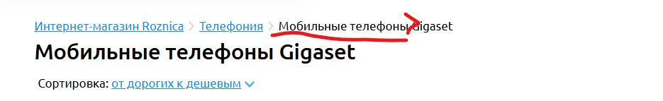 Actual result: Посилання в бредкрампс на категорію "Мобильные телефоны" відсутнє