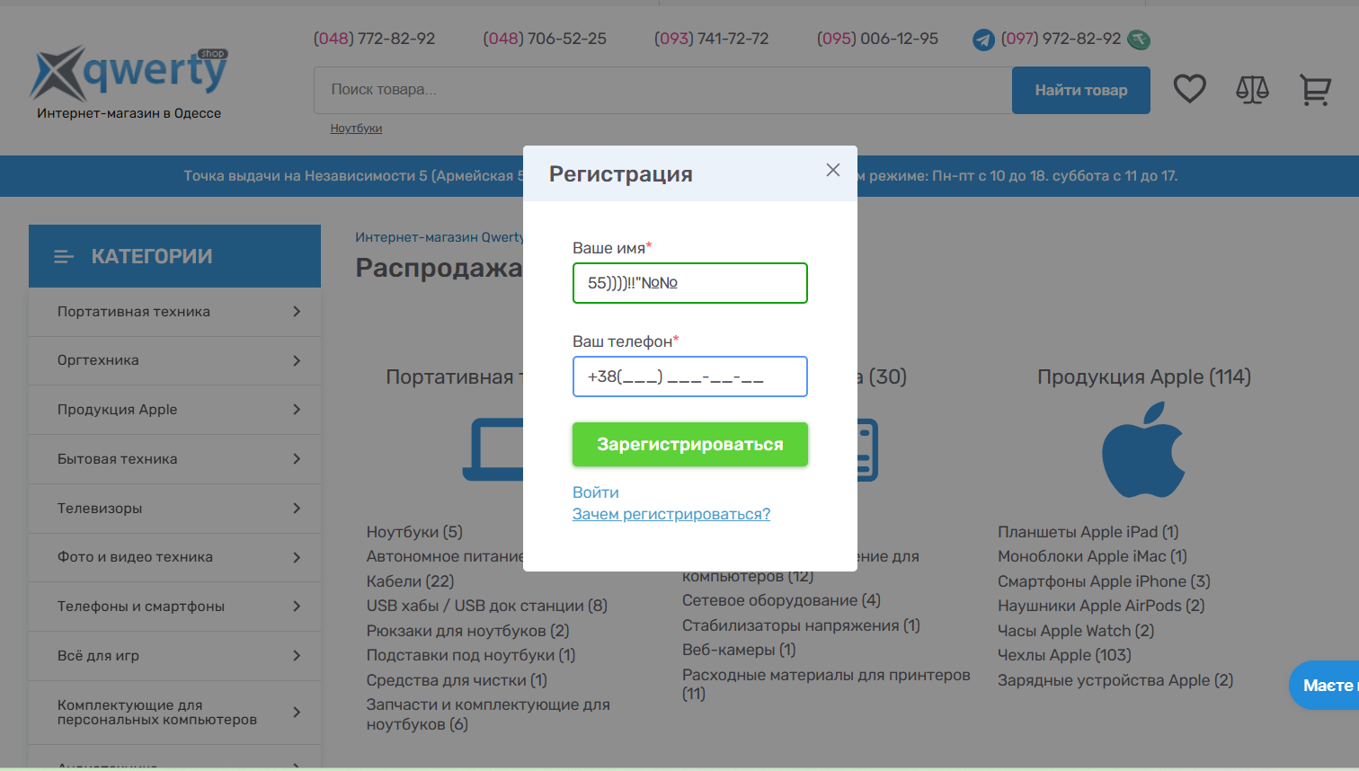 При реєстрації на сайті поле "Імя" приймає некоректні символи