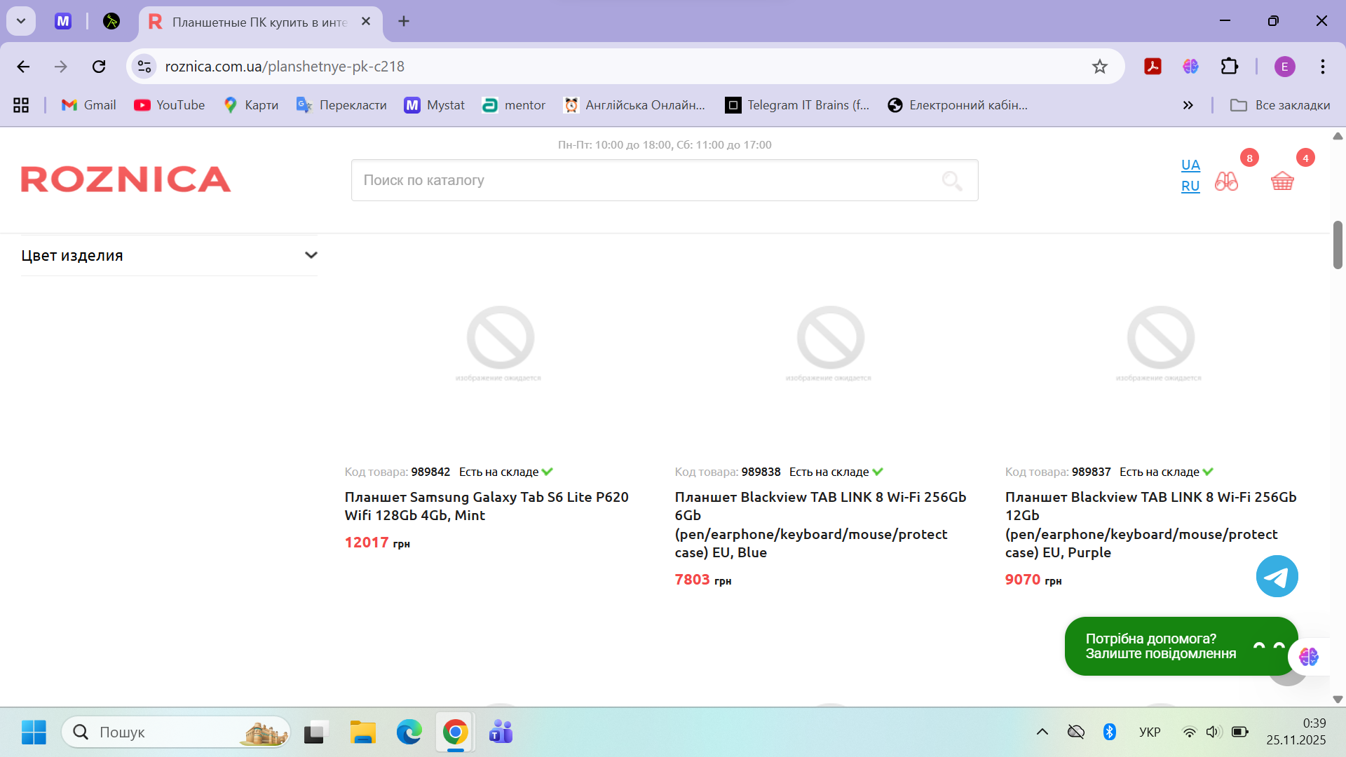 Відсутнє зображення товарів в розділі "Планшетні ПК"