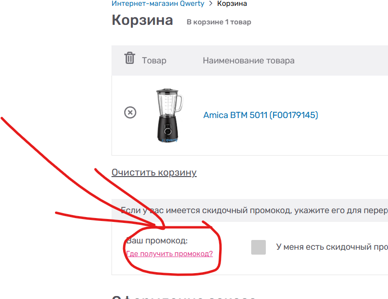 Посилання "Где получить промокод?" в корзині викидає на головну сторінку
