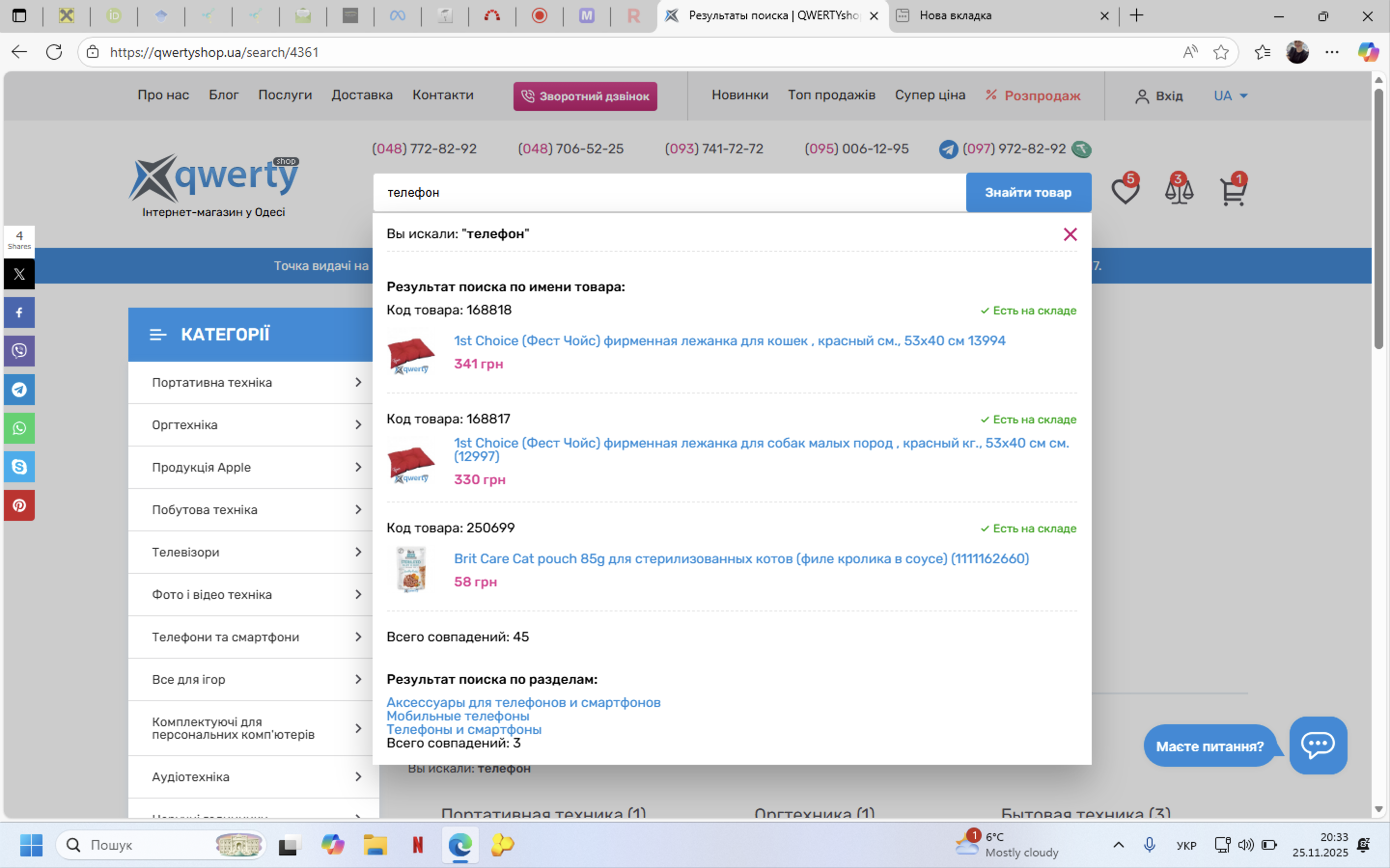 2) В плейсхолдері ввести пошук "Телефон"