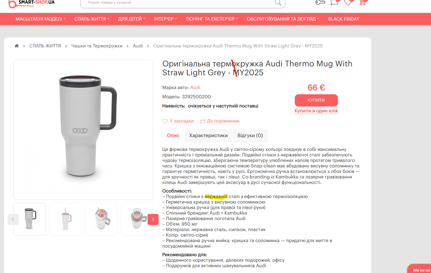 Граматична помилка в характеристиці "оригінальної термокружки Audi Thermo Mug With Straw Light Grey - MY2025"