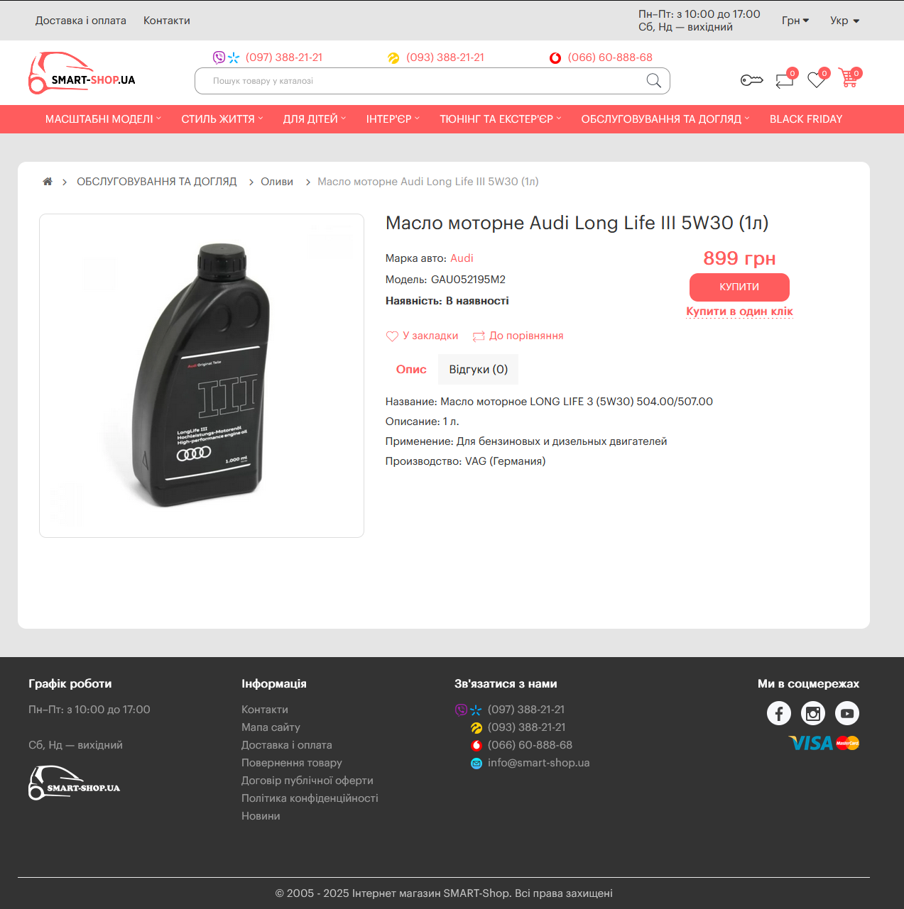 4) Відкрити товар "Масло моторне Audi Long Life III 5W30 (1л)"