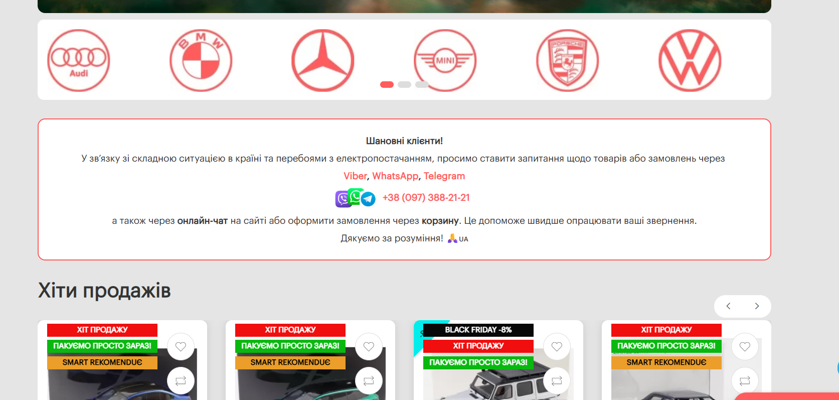 Кнопки "Он-лайн чат" и "Корзина" на главной странице сайта под хедером, в обращении к клиентам, не активные
