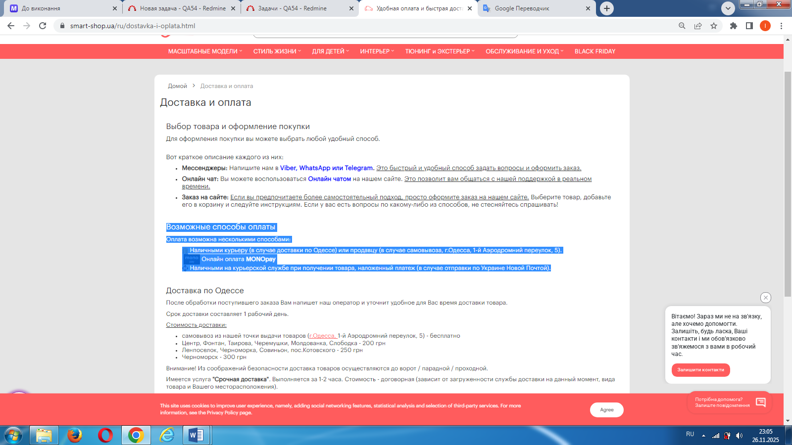 1) открыть ссылку в хедере сайта вверху с края слева "Доставка и оплата" "Возможные способы оплаты"