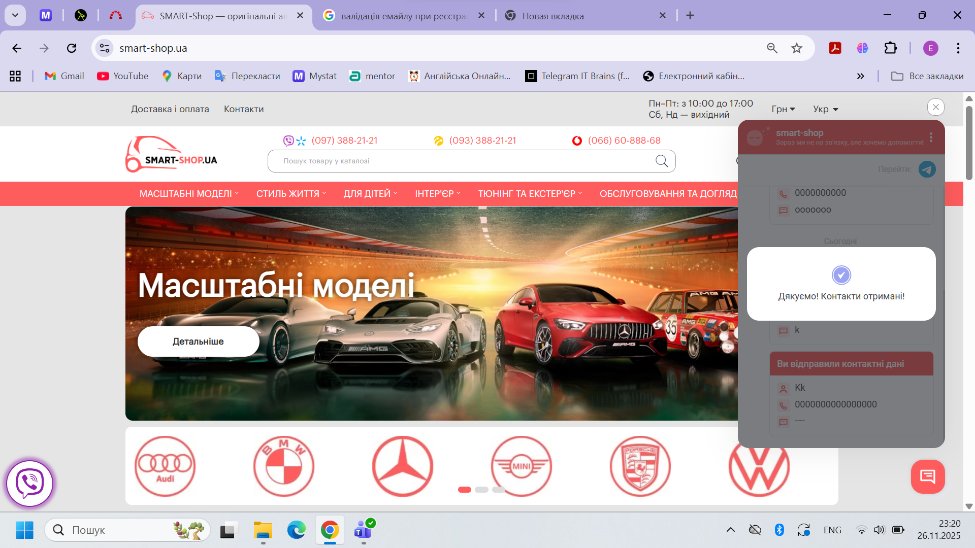 3) Заповнити форму і ввести не коректний номер і кількість цифр (скріншот 2)