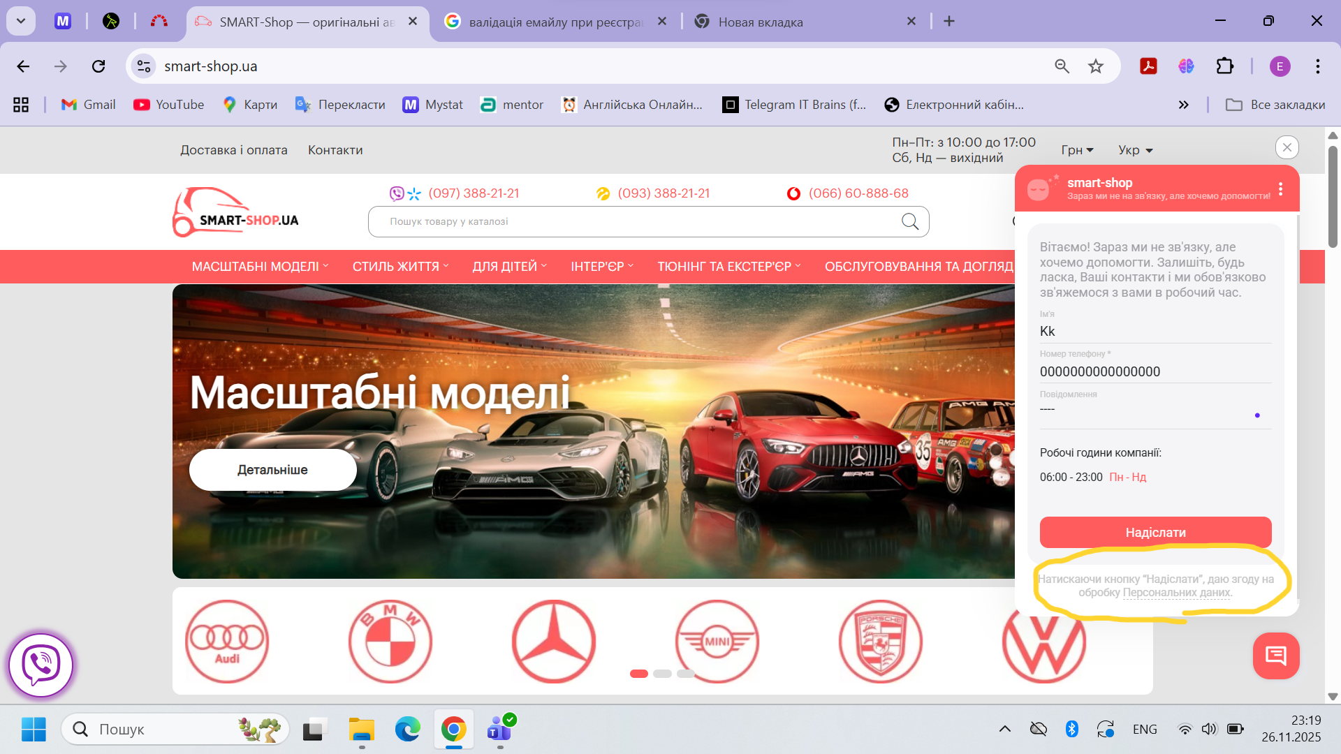 3) В низу форми для заповнення обрати посилання "Персональних данних" (скріншот 2)