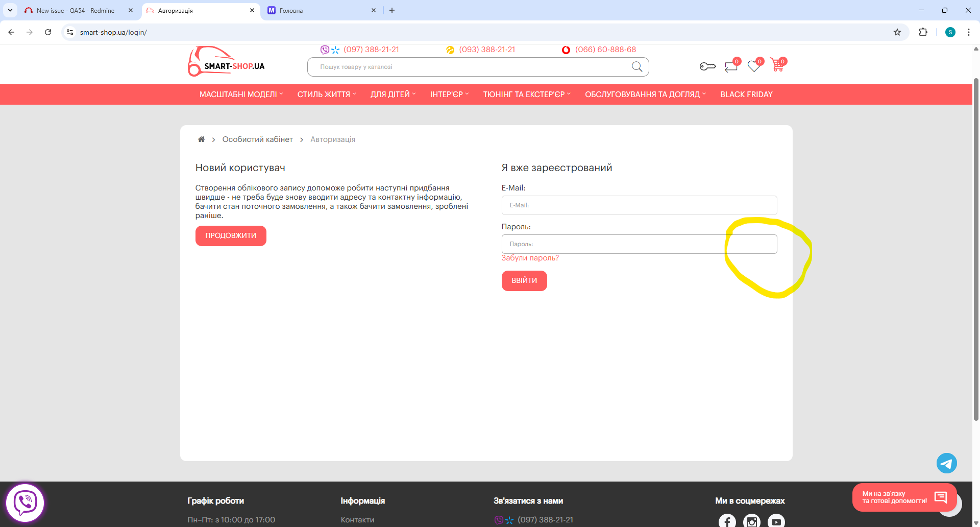 Actual Відсутня кнопка Показати пароль у формі реєстрації і авторизації в особистому кабінеті