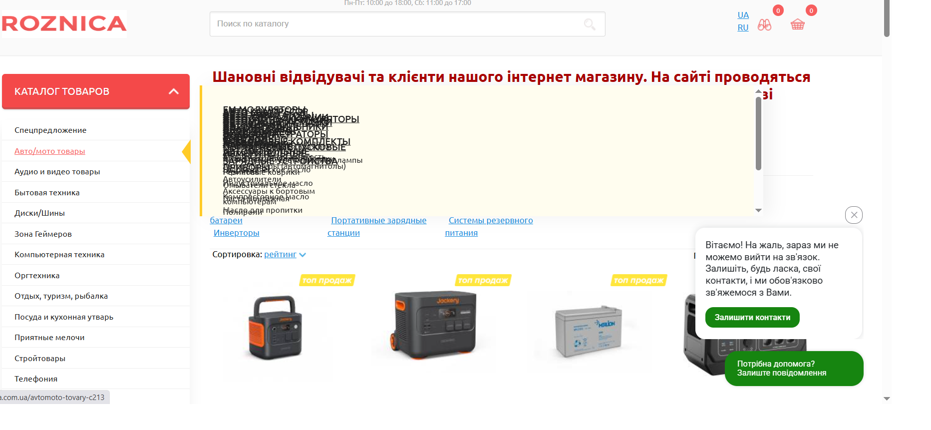 Зміщення тексту у лівому поп-апі головної сторінки "Каталог товарів" у всіх розділах