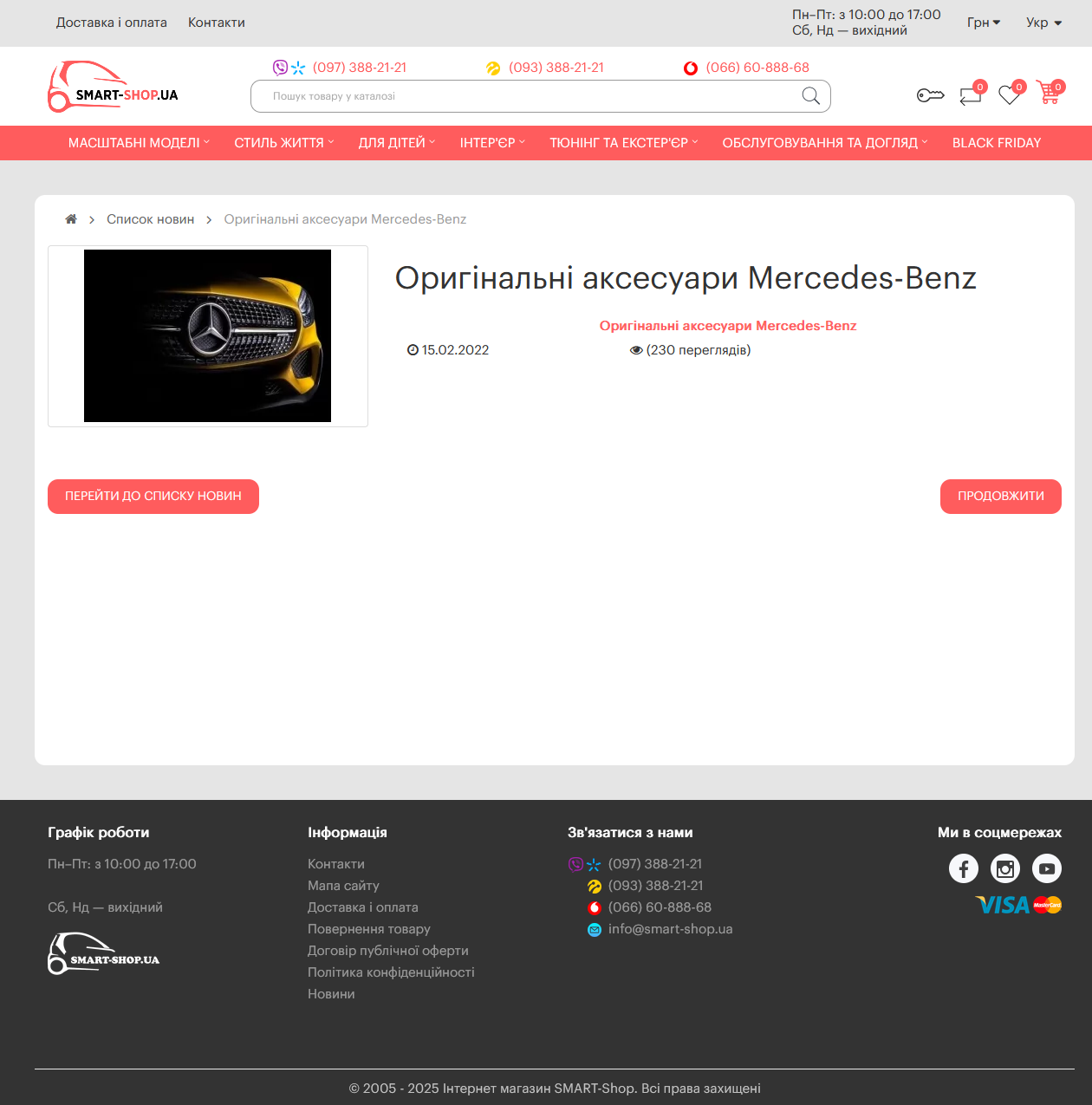 4) У списку новин обрати матеріал "Оригінальні аксесуари Mercedes-Benz" натиснувши кнопку "Детальніше"