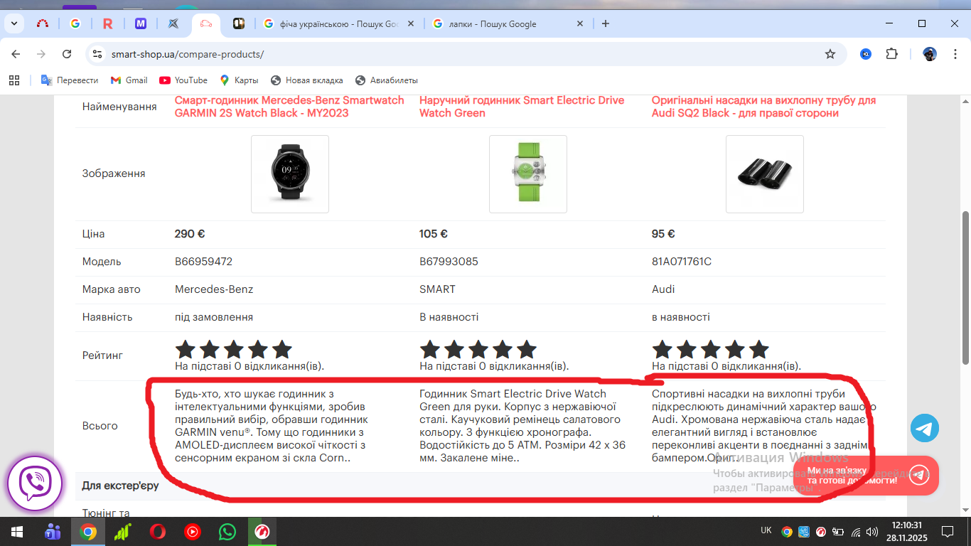 Неможливо розгорнути розлогий опис товару при порівнянні в полі сайту