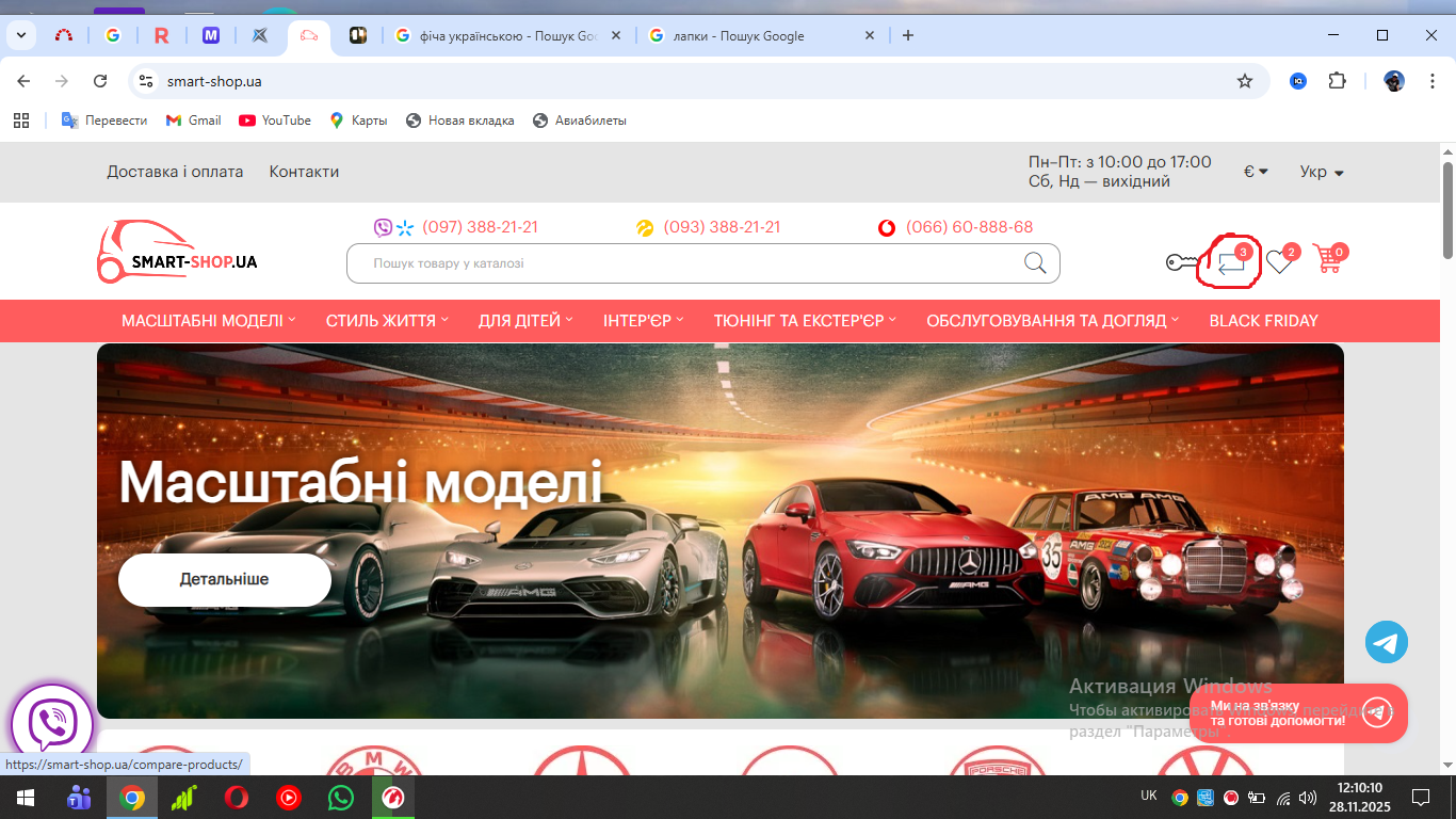 3) перейти на сторінку порівняння товару