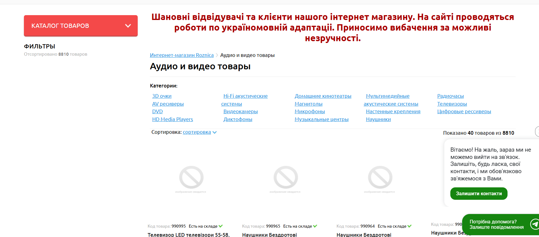 Отсутствуют изображения товаров в категории Аудио и видео товары