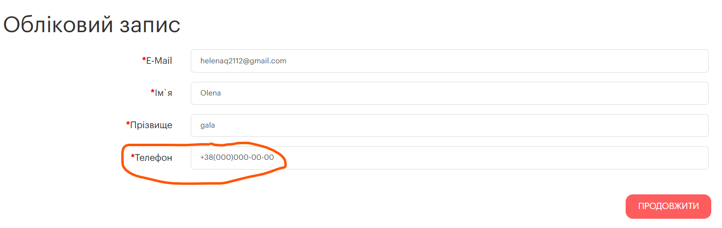 Відсутня валідація телефонного номеру при реєстрації "Облікового запису" в "Особистому кабінеті"