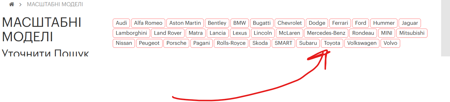 2) В випадаючому списку "Масштабні моделі" вибрати "Показати всі"