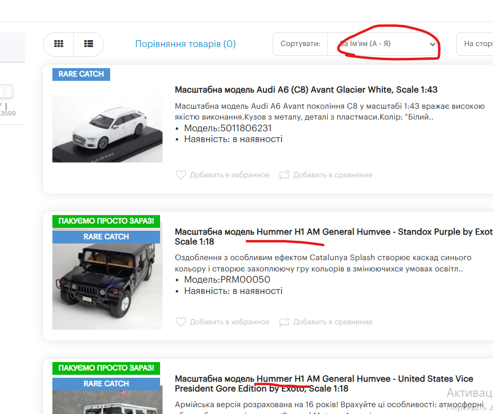 Початок списку видачі результату при сортуванні "За ім'ям А - Я" відображається без сортування