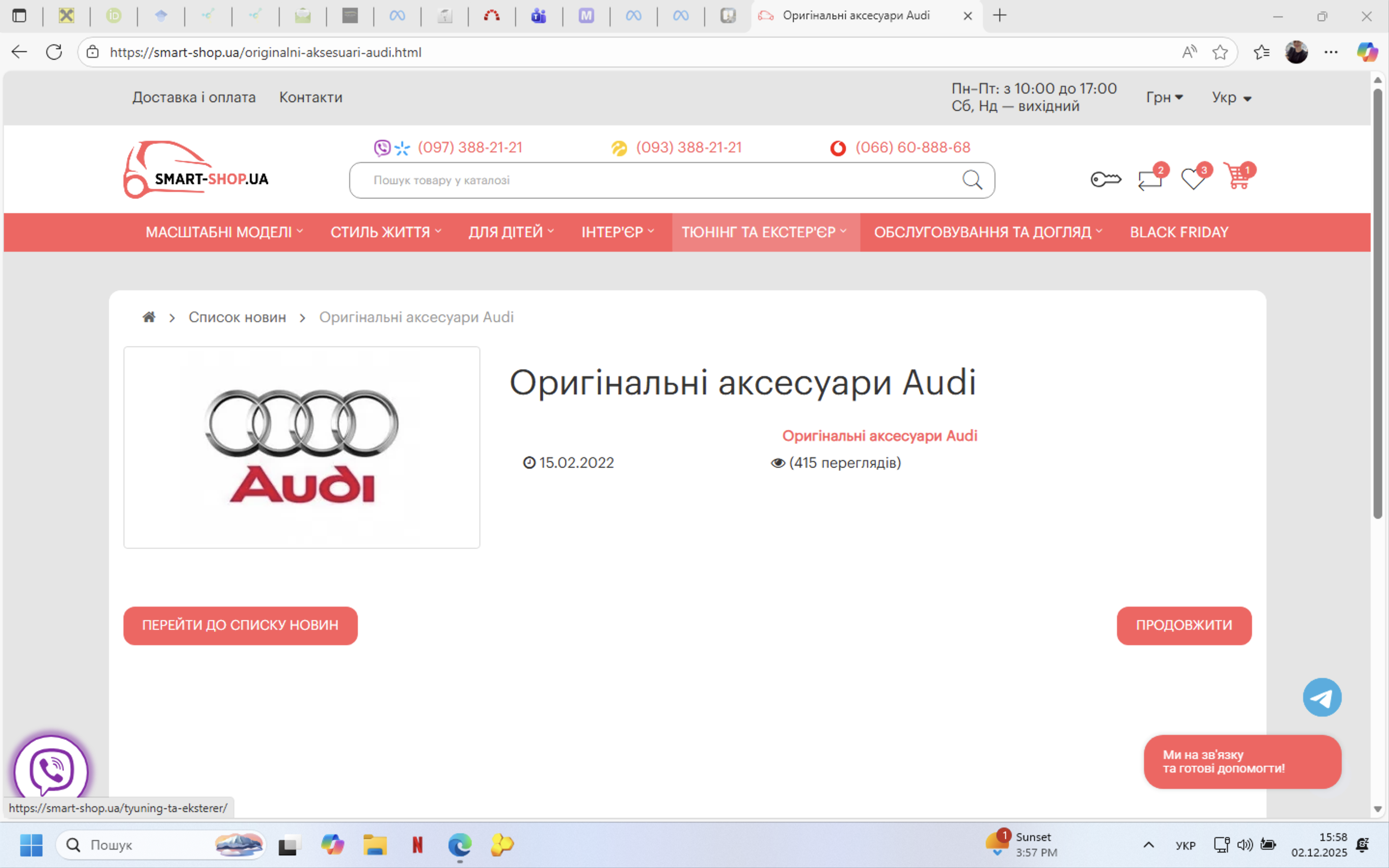 4) Нажати на кнопку "Детальніше" у вікні "Оригінальні аксесуари Audi"