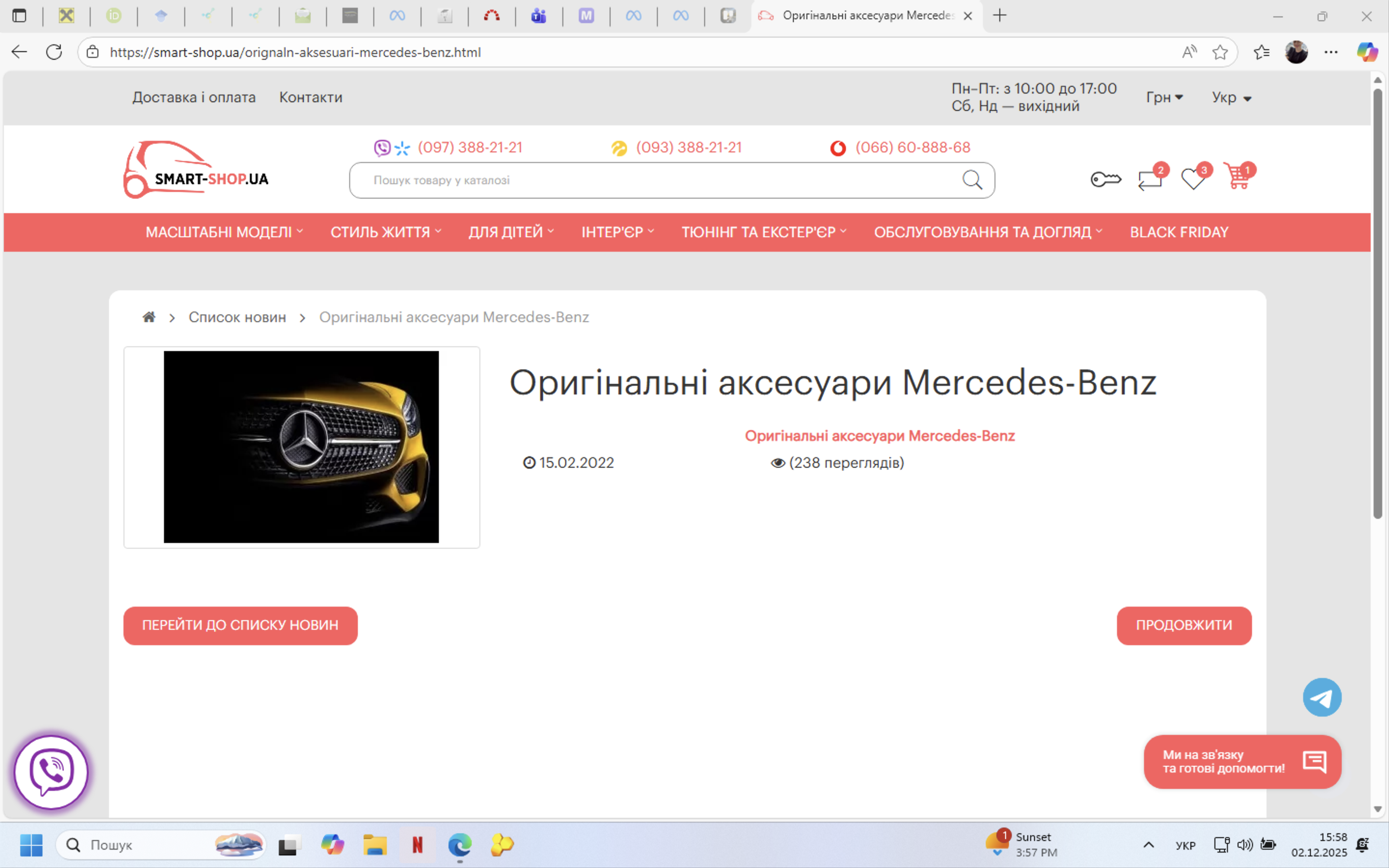 5) Нажати на кнопку "Детальніше" у вікні "Оригінальні аксесуари Mercedes-Benz"