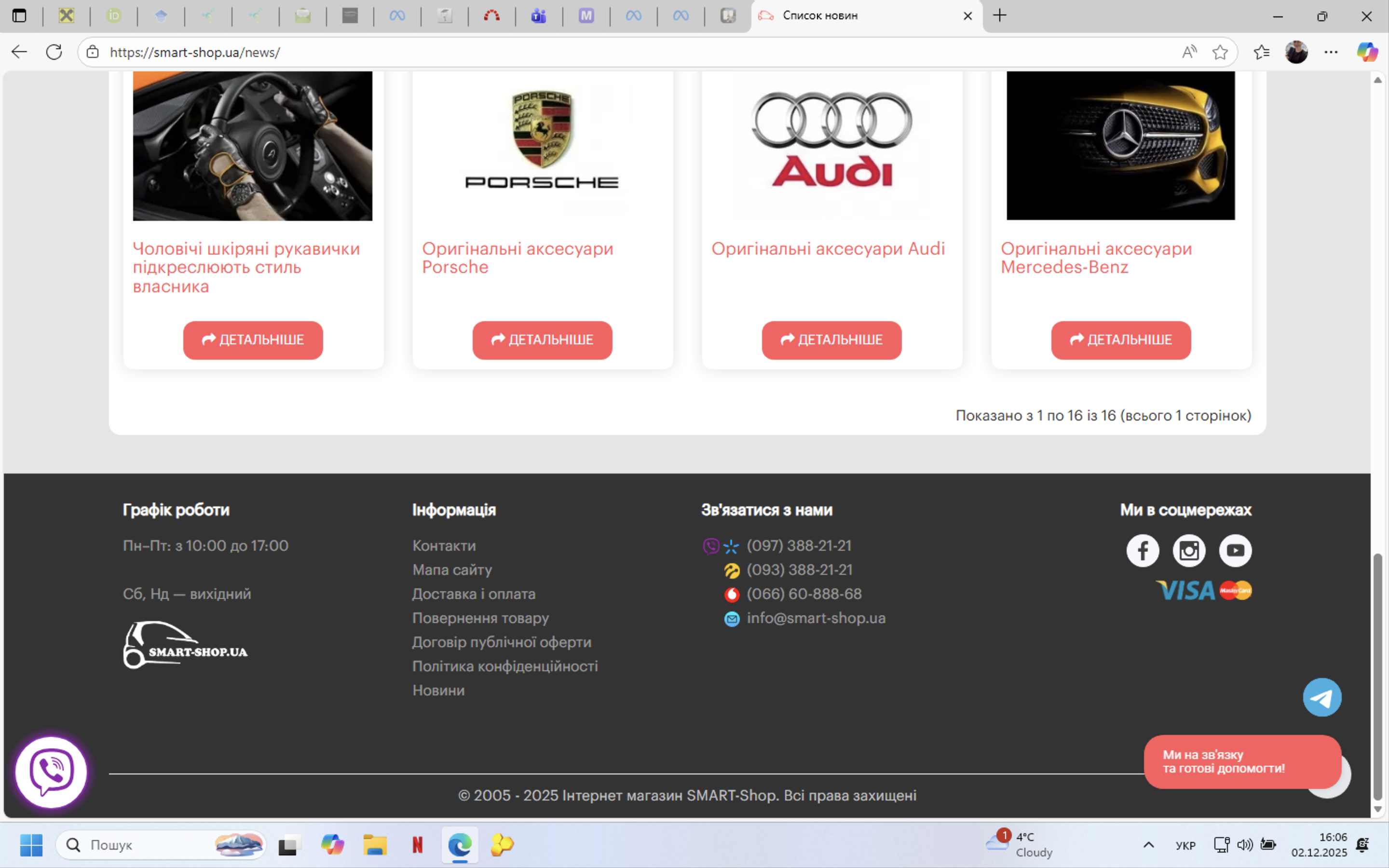 1) В футері сайту в розділі "Інформація" зайти в підрозділ "Новини"