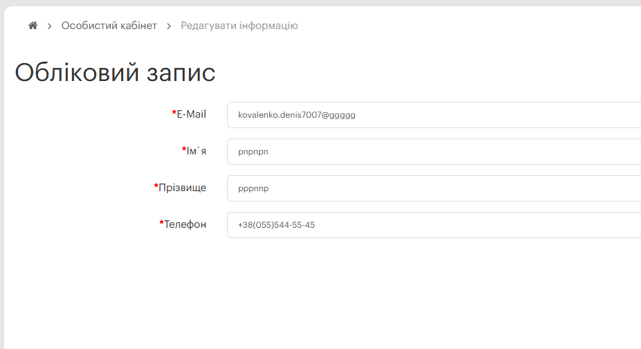 Expected result: Не пропускает регистрацию с не коректными данными