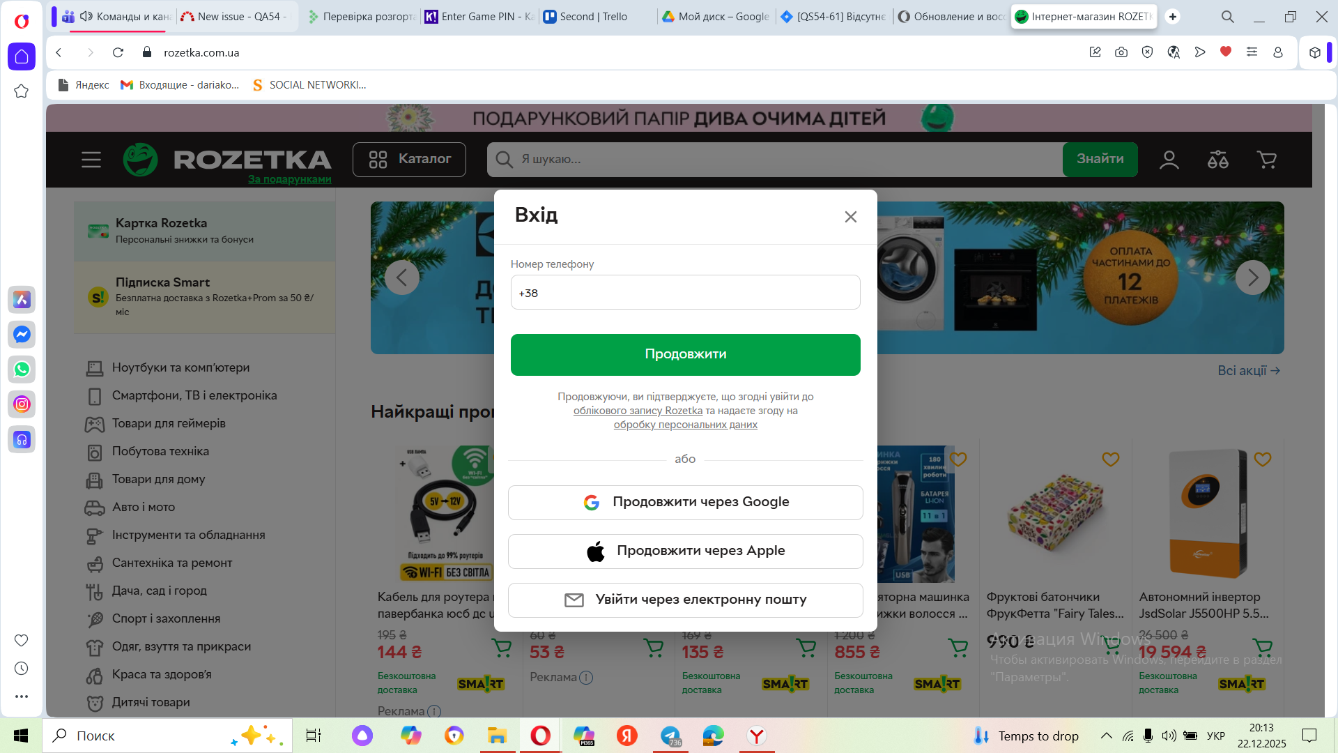 При натисканні на посилання "Інші способи авторизації" додаткові опції не відображаються в формі авторизації