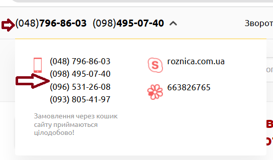 2)У хедері навести курсор на номер телефону.