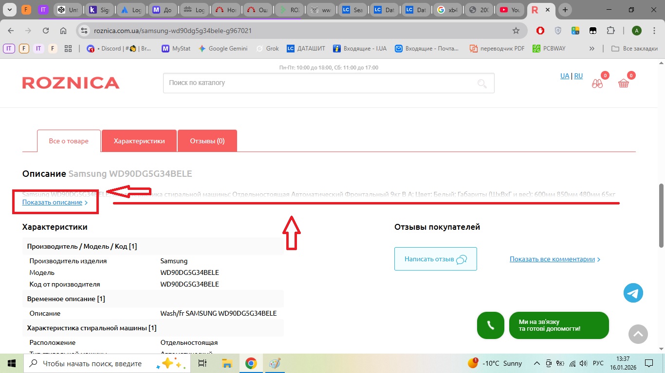 Actual result: описание товара в неразвернутом виде