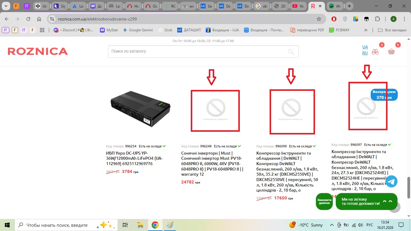 Отсутствие фотографий на многих товарах